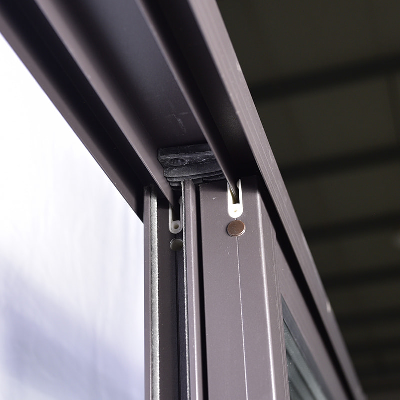 Tepelné zlomy: Hliníkové rámy zvyčajne ľahko vedú teplo a chlad, čo môže viesť k strate energie. Tepelné zlomy sú izolačné materiály (napríklad polyamid) umiestnené medzi vnútornou a vonkajšou vrstvou hliníkového rámu na zníženie tepelnej vodivosti a zabránenie prenosu tepla.