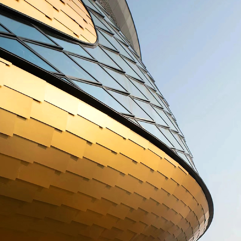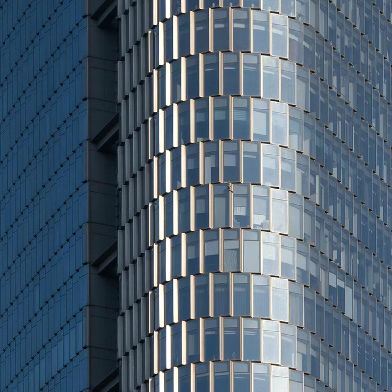 Hliníková závesová stena využíva panely z hliníkovej zliatiny ako primárny stavebný materiál na vytvorenie opláštenia vonkajších povrchov. Dizajn má poskytnúť moderný vzhľad exteriéru budovy, štrukturálnu pevnosť a určité prispôsobenie. Je široko používaný vo výškových budovách, komerčných budovách, kultúrnych budovách atď. Hliníkový panelový záves je systém vonkajšej steny budovy, ktorý používa panely z hliníkovej zliatiny ako vonkajšie obkladové materiály. Tento systém zvyčajne zahŕňa panely z hliníkovej zliatiny, nosné konštrukcie, izolačné vrstvy a ďalšie súvisiace komponenty, ktoré tvoria celkovú dekoráciu vonkajšej steny a tepelný a zvukový izolačný systém. Hliníková zliatina je ľahký a vysoko pevný materiál, vďaka čomu má hliníková závesová stena dobrú konštrukčnú pevnosť a znižuje celkové zaťaženie budovy.